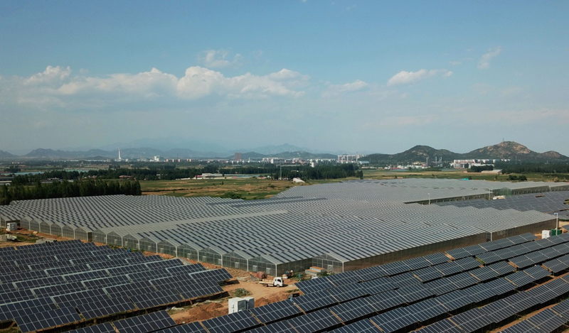 近日,河北省秦皇島市撫寧區(qū)為促進(jìn)農(nóng)民增收,探索“光伏+農(nóng)業(yè)”發(fā)展模式,流轉(zhuǎn)墳坨管理區(qū)坡地興建的“農(nóng)光互補(bǔ)”項(xiàng)目開始投入運(yùn)營(yíng)。據(jù)介紹,該項(xiàng)目占地800畝,光伏發(fā)電裝機(jī)容量20兆瓦,年發(fā)量2600萬(wàn)千瓦時(shí),年節(jié)約標(biāo)煤7900噸,農(nóng)民通過(guò)收取土地租金,到農(nóng)業(yè)園區(qū)打工或土地返租耕種獲取利益,實(shí)現(xiàn)雙贏。新華社記者 楊世堯 攝