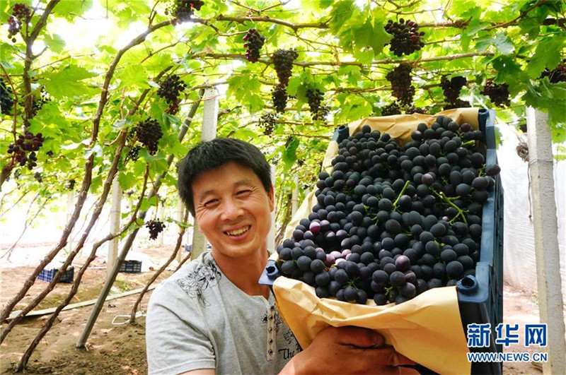 6月1日,昌黎縣十里鋪村的果農(nóng)在大棚內(nèi)采摘玫瑰香葡萄。