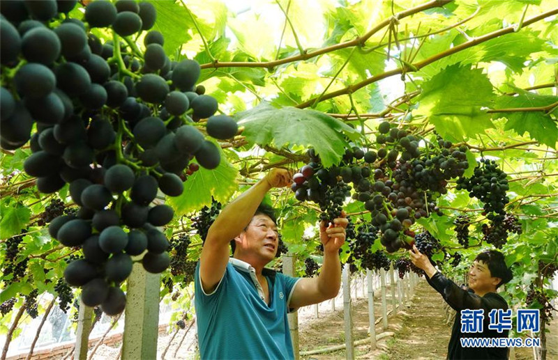近年來,河北省昌黎縣引導(dǎo)農(nóng)民種植玫瑰香等品種的大棚鮮食葡萄,取得良好經(jīng)濟(jì)效益。據(jù)介紹,目前該縣大棚鮮食葡萄種植面積達(dá)4500畝,年產(chǎn)鮮食葡萄8000噸。新華社記者 楊世堯 攝