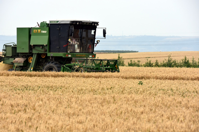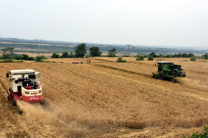 近日,陜西小麥夏收工作由南向北、自東向西全面展開。據(jù)陜西省農(nóng)業(yè)廳介紹,今年陜西共投入130萬(wàn)臺(tái)(套)農(nóng)機(jī)具,將對(duì)1790萬(wàn)畝夏糧進(jìn)行收播,其中小麥播種面積1590萬(wàn)畝。新華社記者 都紅剛 攝