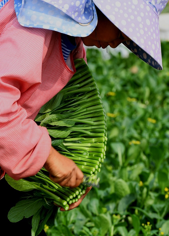 時(shí)下正值大田蔬菜收獲季,在河南省西華縣宋府園林家庭農(nóng)場供港蔬菜生產(chǎn)基地,芥藍(lán)、菜心、上海青等蔬菜品種陸續(xù)進(jìn)入采摘高峰。新華社記者 李安 攝