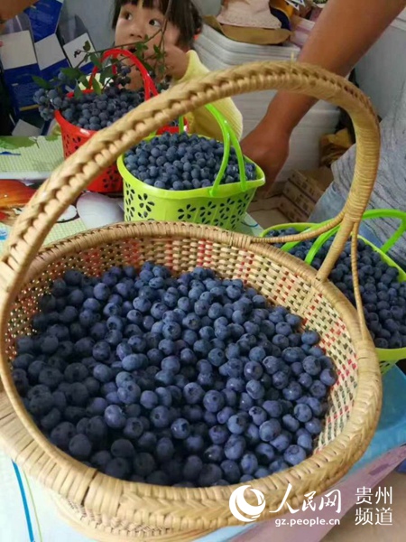 在該縣板當(dāng)鎮(zhèn)洞口村的百靈生態(tài)藍(lán)莓園,前往園內(nèi)采摘藍(lán)莓的游客也是絡(luò)繹不絕。