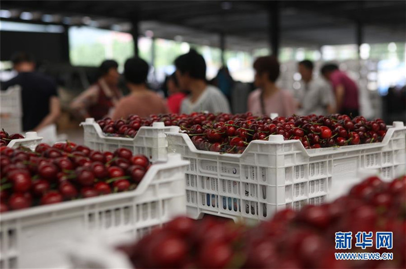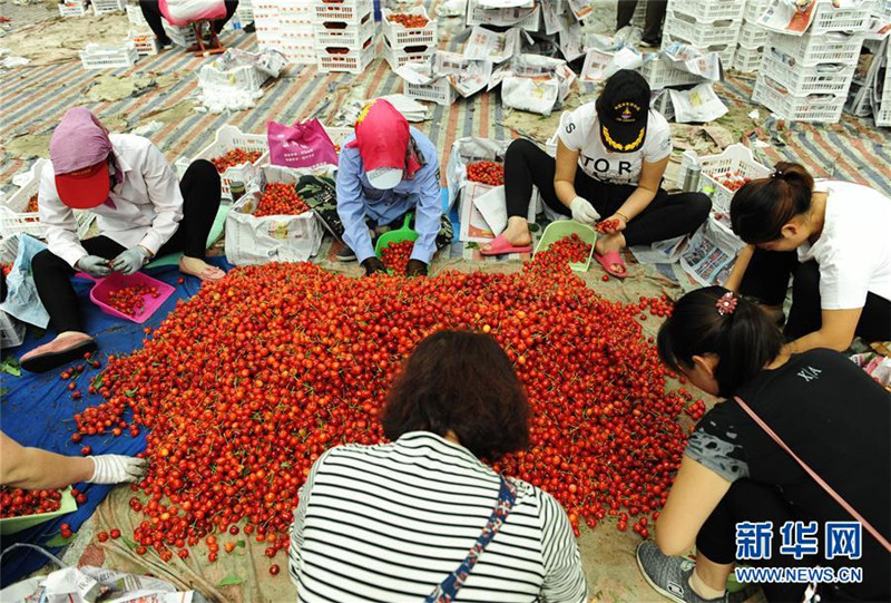 近年來,山東省煙臺市福山區(qū)張格莊鎮(zhèn)在推進鄉(xiāng)村振興工作中,依托本地資源優(yōu)勢,大力發(fā)展櫻桃產(chǎn)業(yè),形成集櫻桃種植、交易、物流、采摘、旅游等于一身的產(chǎn)業(yè)鏈。2017年,張格莊鎮(zhèn)櫻桃種植面積達2萬畝,成交量達3萬噸,農(nóng)民人均可支配收入超過2萬元。櫻桃產(chǎn)業(yè)成為張格莊鎮(zhèn)鄉(xiāng)村振興的支柱產(chǎn)業(yè)。新華社記者 任鵬飛 攝