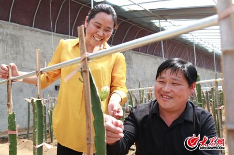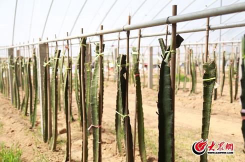 近日,記者來到臨沂臨港區(qū)朱蘆鎮(zhèn)厲家泉村種植大棚內(nèi),只見一根根形似仙人掌的火龍果苗生機(jī)勃勃地生長著!拔覀兇鍏枙洺鋈タ疾鞂W(xué)習(xí)后,給大伙帶來了火龍果,管理簡(jiǎn)單,效益還高,很期待今年的好收成!狈N植戶張麗娥笑著告訴記者。
