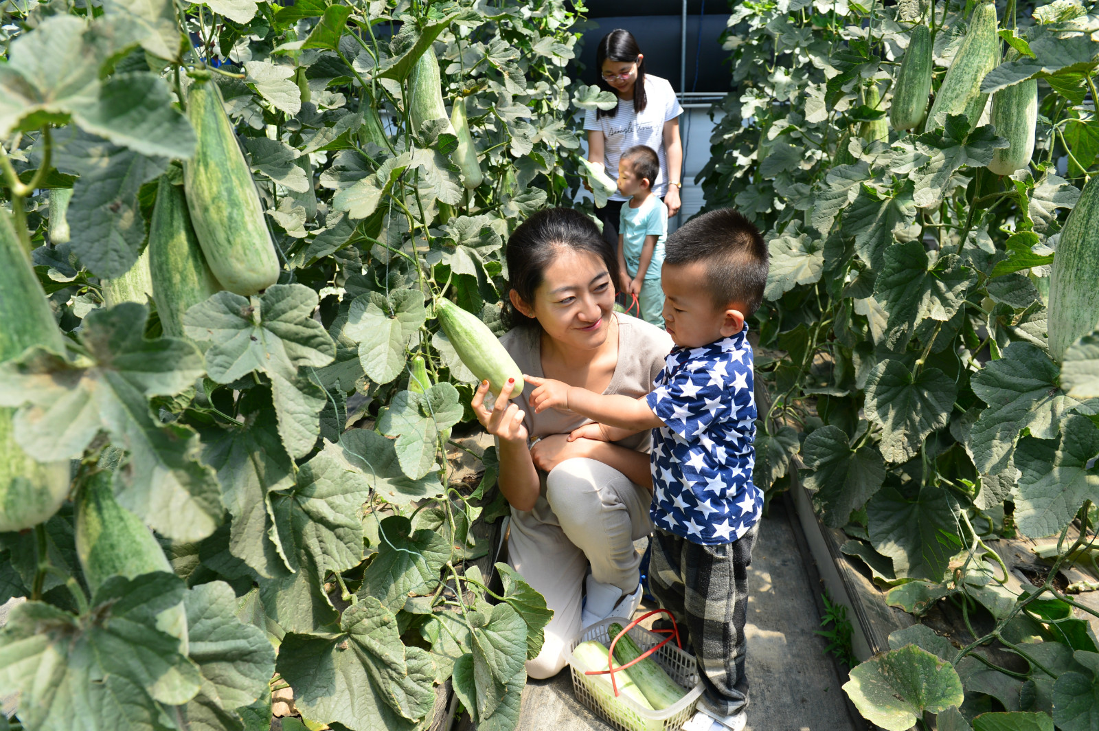 游客在陽原縣久泰生態(tài)種植有限責(zé)任公司的果蔬大棚內(nèi)采摘羊角蜜甜瓜。中國農(nóng)業(yè)新聞網(wǎng)記者 戴軍 攝