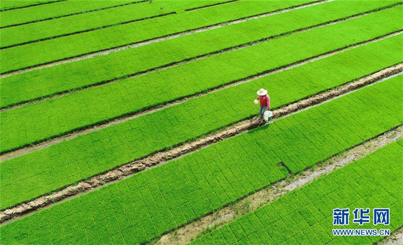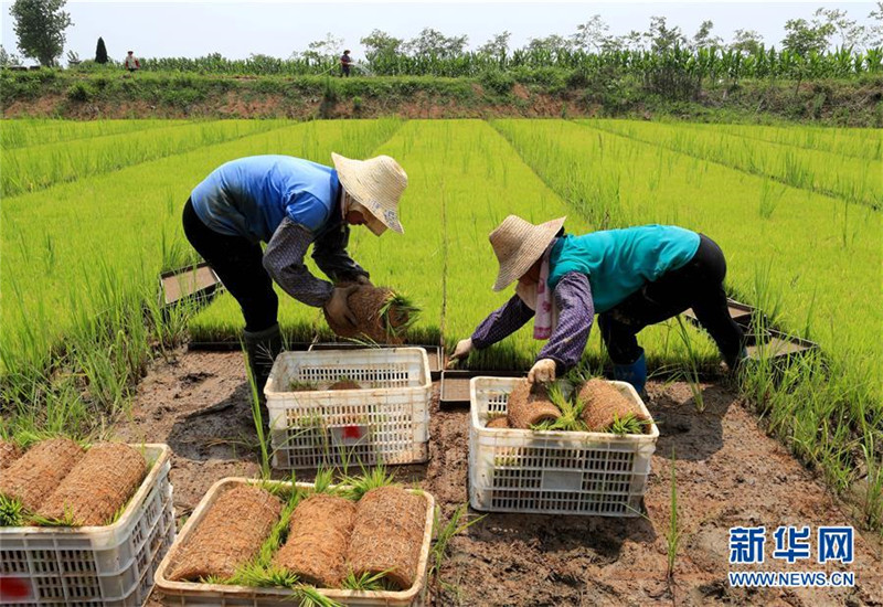 6月14日,安徽省全椒縣一專業(yè)合作社的農(nóng)民對秧苗進(jìn)行管理。