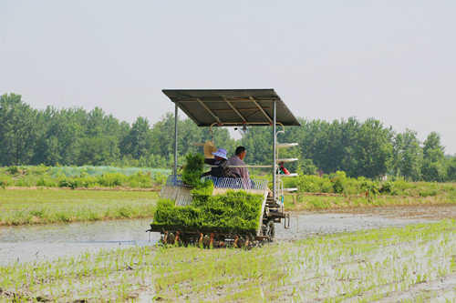 村民正在進(jìn)行機(jī)器插秧