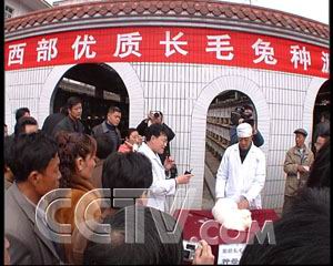 2006年3月1日,雅安市召開的長毛兔產(chǎn)業(yè)發(fā)展推進(jìn)會期間,還特意為滎經(jīng)長毛兔舉辦了首屆展銷交易會。如今在滎經(jīng),種兔場已經(jīng)發(fā)展到了十幾家,競爭自然也激烈了很多,為了在展銷會上賣個好價(jià)錢,不少參加過剪兔毛比賽的養(yǎng)殖戶還特意把自己獲得的獎狀掛了出來。