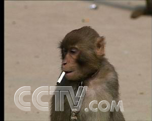 記者:“這位就是匡氏三兄弟的老三匡三傲,匡氏三兄弟在全國已經(jīng)是非常非常的有名了,國內(nèi)外十幾家電視臺對他們的猴藝表演都做過報道,那很多片子都賣到了海外。”