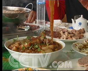 東北人喜歡吃豬肉燉粉條,而東北民豬肉燉出來特別香,它成了這道名菜最優(yōu)良的原料,因?yàn)楹瓦@道菜產(chǎn)生了濃厚的聯(lián)系,每年,紅堡村的民豬占據(jù)了蘭西縣豬肉市場(chǎng)近三分之一的份額。