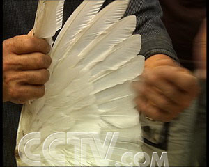 經(jīng)銷商 劉勝利:“這個(gè)鵝有絨,毛和肉質(zhì)也好,肉也肥,體格也大,還要這個(gè)絨啊,這個(gè)絨好,三四百元一斤呢,一只鵝的絨賣十二三元錢吧,這前頭的賣三角五分一根,土雜鵝小,毛又不好,長(zhǎng)得時(shí)間長(zhǎng)了毛都爛了。”