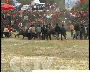 2006年上半年,在政府的扶持下,云霧鎮(zhèn)成立了苗族斗牛協(xié)會,把村民的斗牛娛樂活動變成了有組織的斗牛比賽。而且,每次比賽還設有8000到3000元三個等級的獎金,斗牛的身價也成倍地增高。