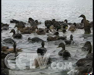 其實這些游客不知道,這些鴨子的翅膀早就動過手腳了,否則他們一只鴨子也逮不到。因為這群鴨子可不是一般的家鴨,學名叫做美國綠頭野鴨。成年的種鴨從高往低能飛到一公里外的河對岸。