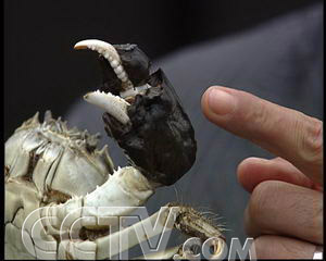 史團(tuán)結(jié):“我們就怕他對這個螃蟹知識一竊不通就過來白吃的,那也破壞我們這個比賽,所以就搞了一些趣味的知識競答,比如說螃蟹有沒有血,如 果有它是什么顏色的。螃蟹的血是白色的,它有血,這樣的。比如說我有一個問題,一般人答不上來的,我就問這個螃蟹的鼻子在哪里,它這個鼻子就在這個大腳上 面的這個毛就是它的鼻子。”