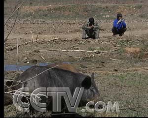 村民們一致贊成改良換代,重新圍山。為了保證野豬肉的品質(zhì),在重新引水上山,圍劃山林的這段時間,村民采用了權(quán)宜之計,每天像放羊似的,牽 著野豬上山放風(fēng),但每天黃昏野豬回圈,太平山村里就要上演各式各樣的抓豬行動。雖然是勞神費力,但能賣個好價錢,大家都覺得值,更何況,這熱鬧的景象還吸 引來了新的投資。
