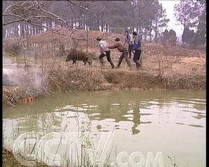 這回可算是開工了,可是對于從來就沒見過野豬的工人來說,這次的宰殺更像是一次體能訓(xùn)練。野豬還跟他們玩起了水上運動。