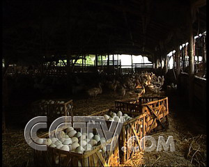 浙江省蒼南縣靈溪鎮(zhèn)蔡宅村養(yǎng)殖戶 蔡景巧:“我們按配方把飼料配起來,鴨子一年到頭不會(huì)退毛了。鴨子產(chǎn)蛋率就有9成5了。”