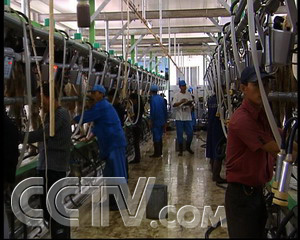 同樣一頭奶牛2007年比2006年平均少收入了1000多元。張洪貴今年家里養(yǎng)了50頭奶牛,因?yàn)檎w效益下滑,他少收入了五六萬元。