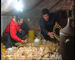 周華:“就是這個爐子加溫的,小雞抓回來要達到33攝氏度以上,是因為爐子沒有及時加炭。”