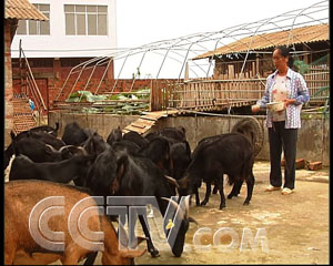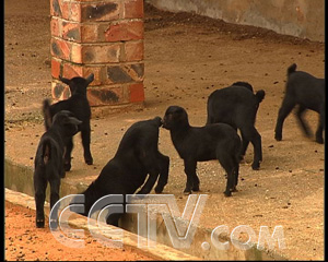 向文琦:“這種黑山羊,是已經(jīng)生長五個月,剛剛是35斤。這種雜交的羊養(yǎng)到三個月就已經(jīng)是35斤了。”